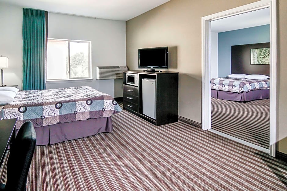 A microwave and small refrigerator are included in this room. There is space for an extra bed.